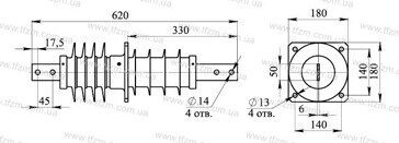 - ИППУ-10/630-8-04 УХЛ1 - исполнение -04, 10 кВ, с одной алюминиевой (сплав АД31) токоведущей шиной 50х6, квадратным фланцем 140х140, крепление изолятора с наружной стороны, IV СЗА;