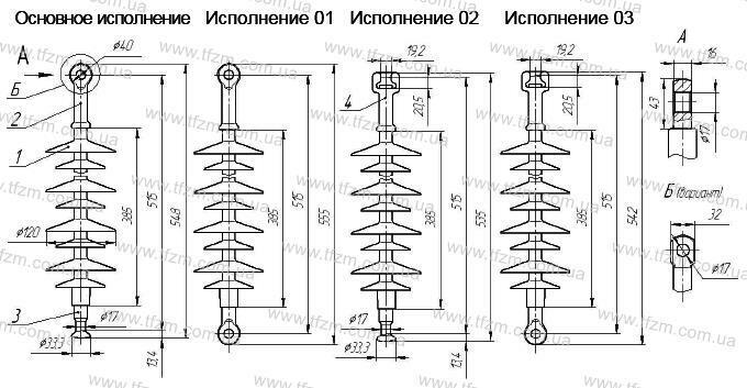 Изолятор ЛК 70-35-3Ц изготавливается в следующих основных вариантах исполнения: