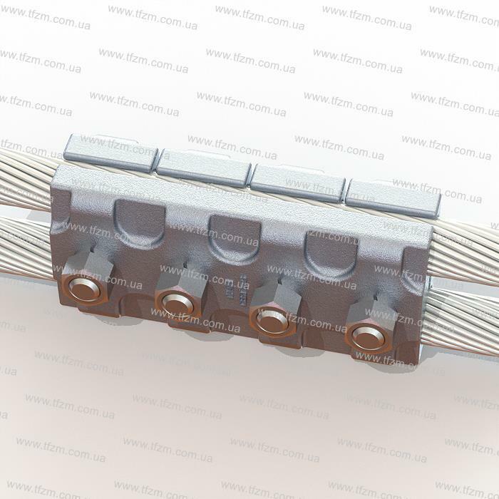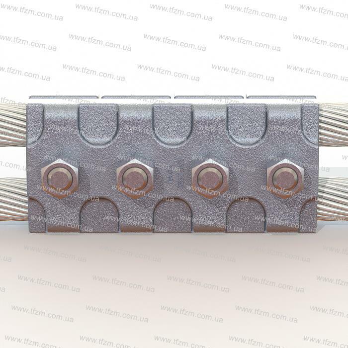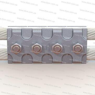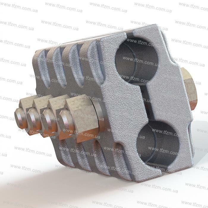 Зажим ПА-6-1 состоит из корпуса и четырех плашек, изготовленных из алюминиевого сплава, соединенных между собой болтами М16х75.